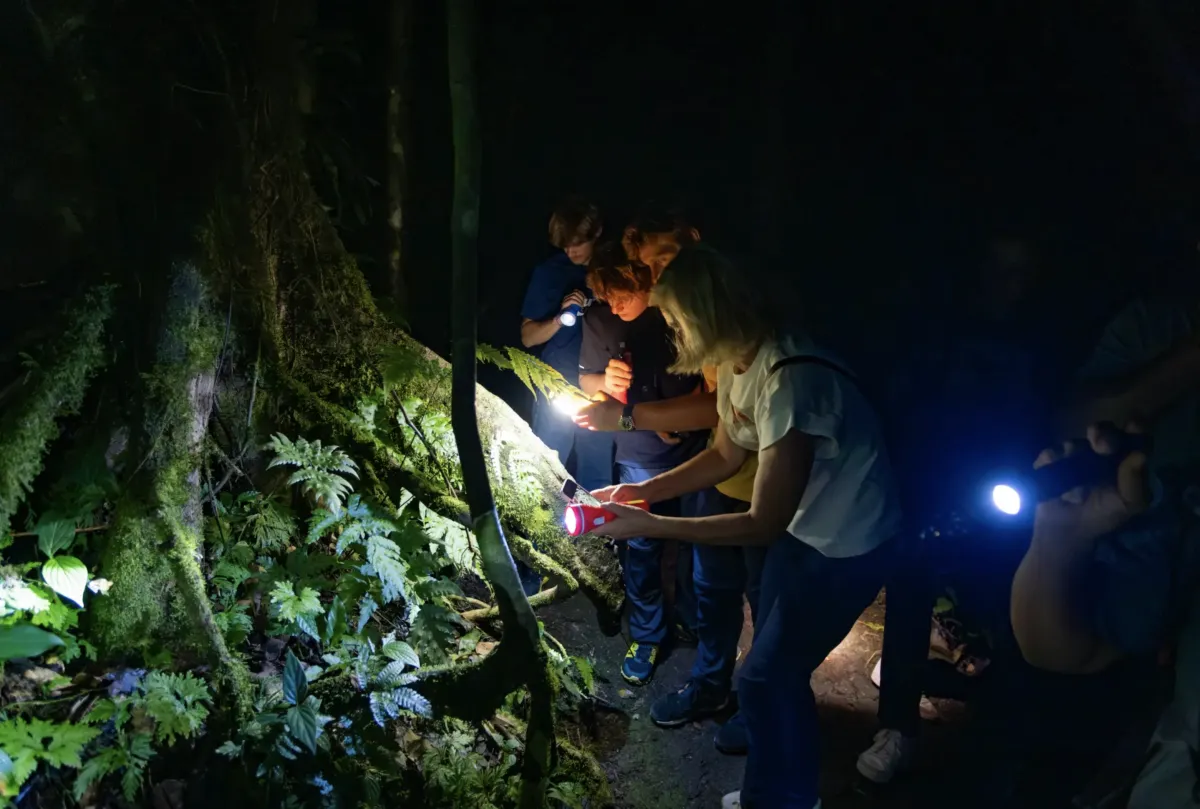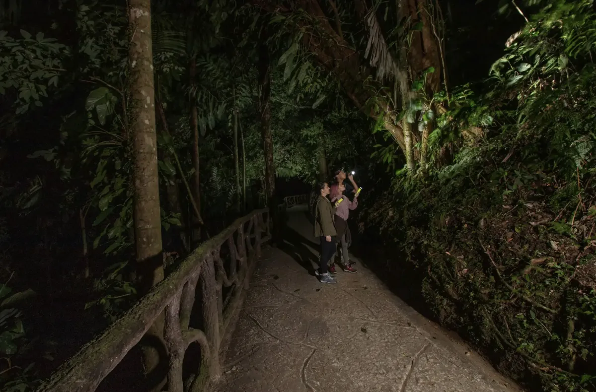 La Fortuna's rainforest is filled with life during the day, but once the sun sinks beyond the treetops, a hidden world awakens. The air cools, the forest quiets for a moment—and then the night comes alive! This guided La Fortuna night hike takes you into the heart of the rainforest's nocturnal world at the famous Mistico Arenal Hanging Bridges Park. Our expert guides lead you to the wildlife most travelers never see, taking you closer to the mystery and magic that the night brings.