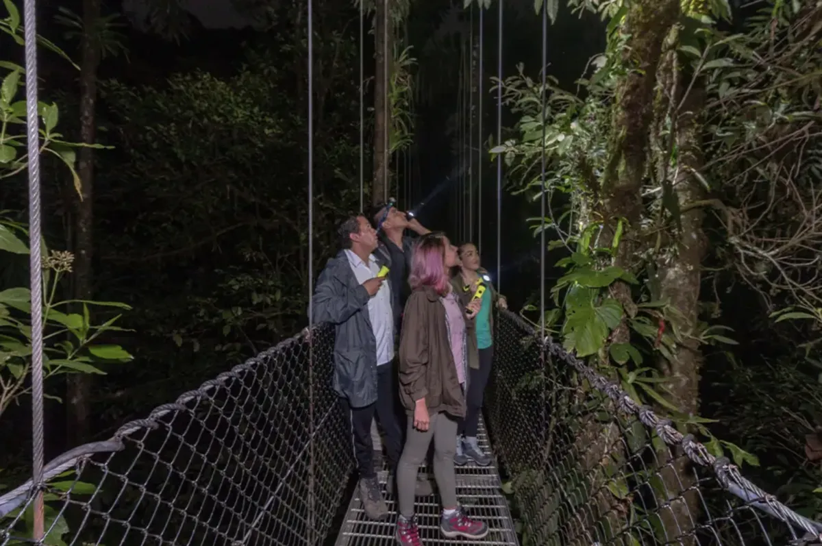 Imagine crossing a swaying hanging bridge surrounded by the shadows of the tropical rainforest, with only the sounds of nature and the stars above you. This tour gives you the unique chance to experience the forest's architecture from the canopy, without the daytime crowds. You'll step onto bridges with the rainforest stretching out far below you, all while your guide points out life in the treetops.